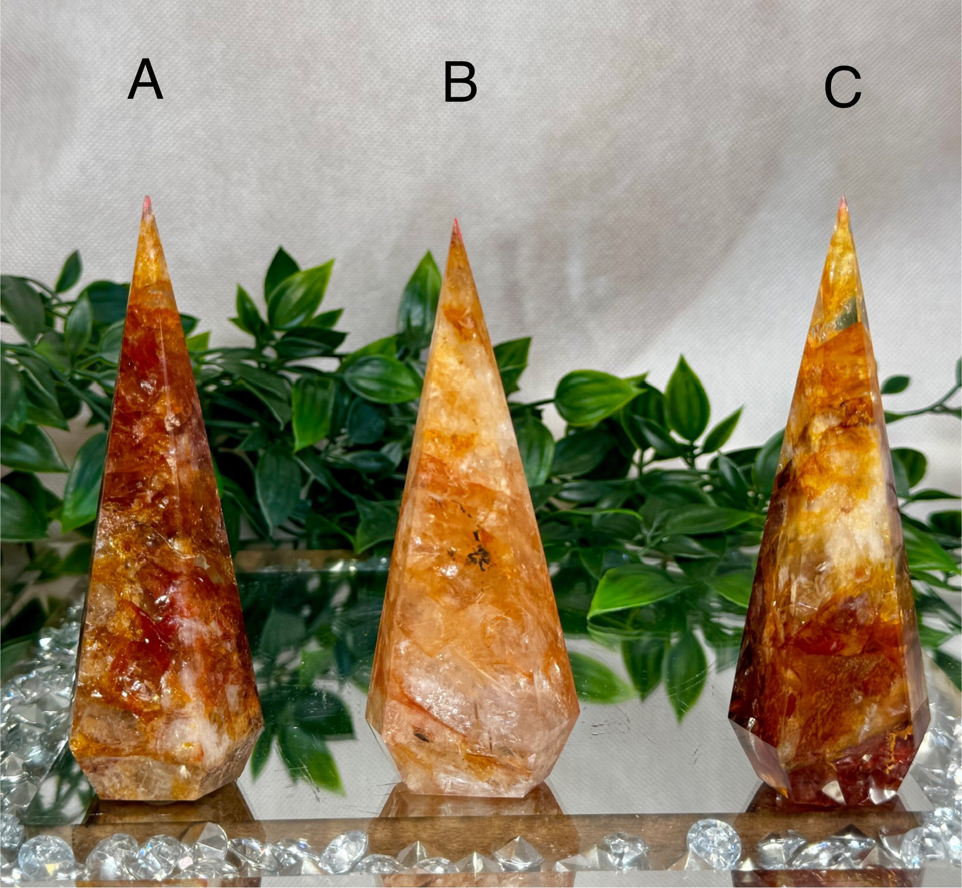 Beautiful Golden Healer diamonds, some mixed with inclusions of Fire Quartz.